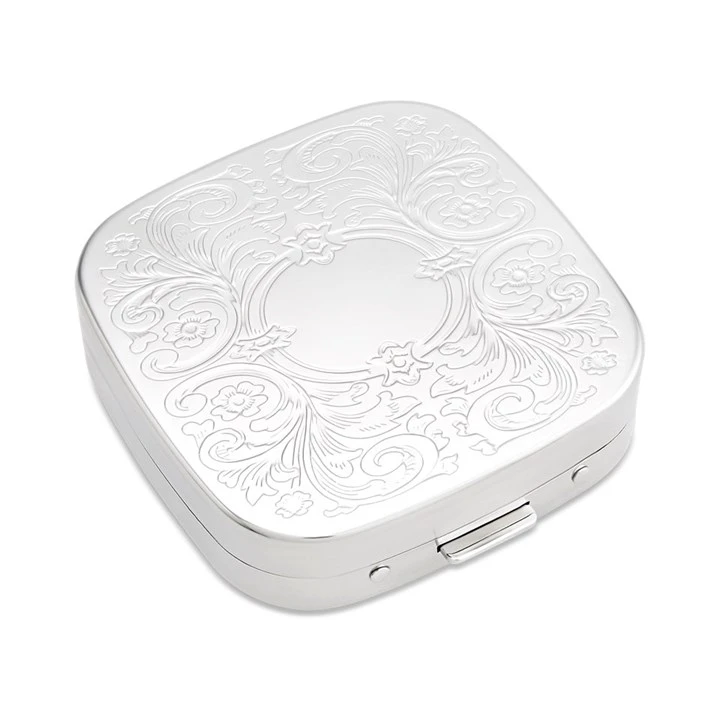 Nickel Plated Scroll Design Pill Box - P65337