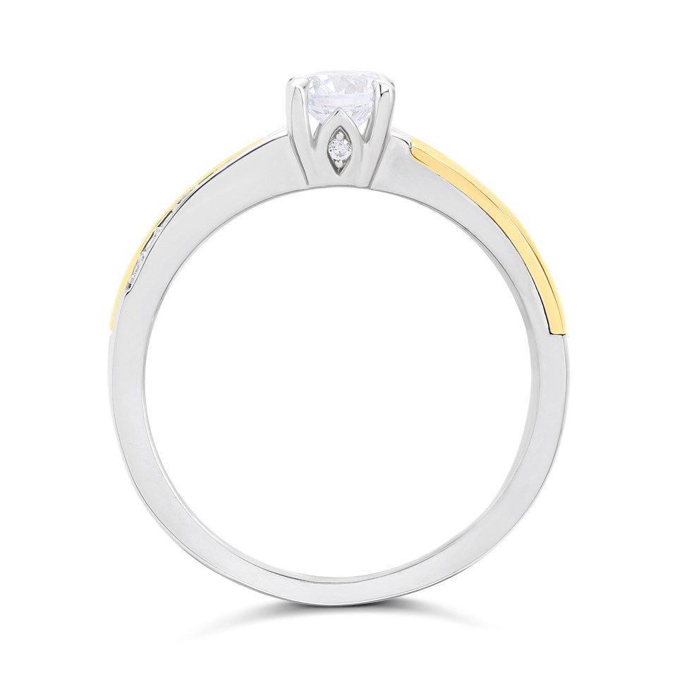 Night & Day Silver And 9ct Gold Diagonal CZ Ring - R9903