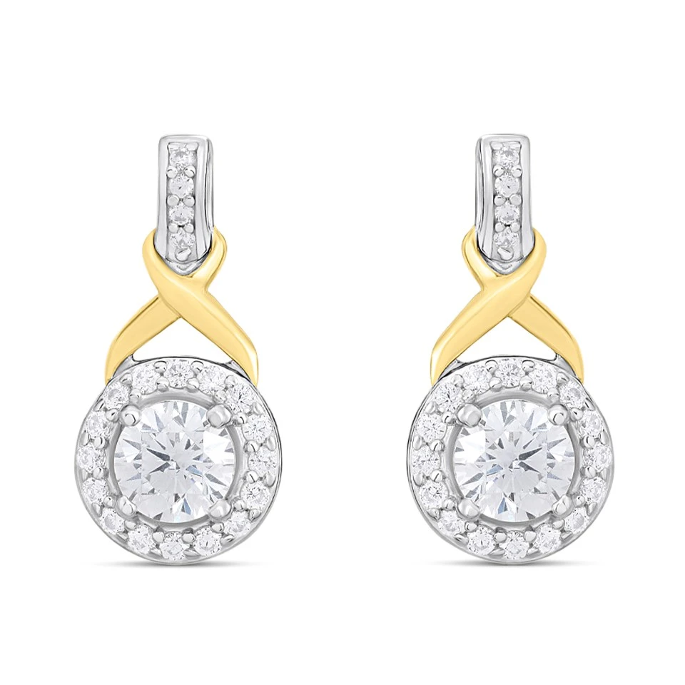 Night & Day Silver And 9ct Gold Halo CZ Earrings - G9960