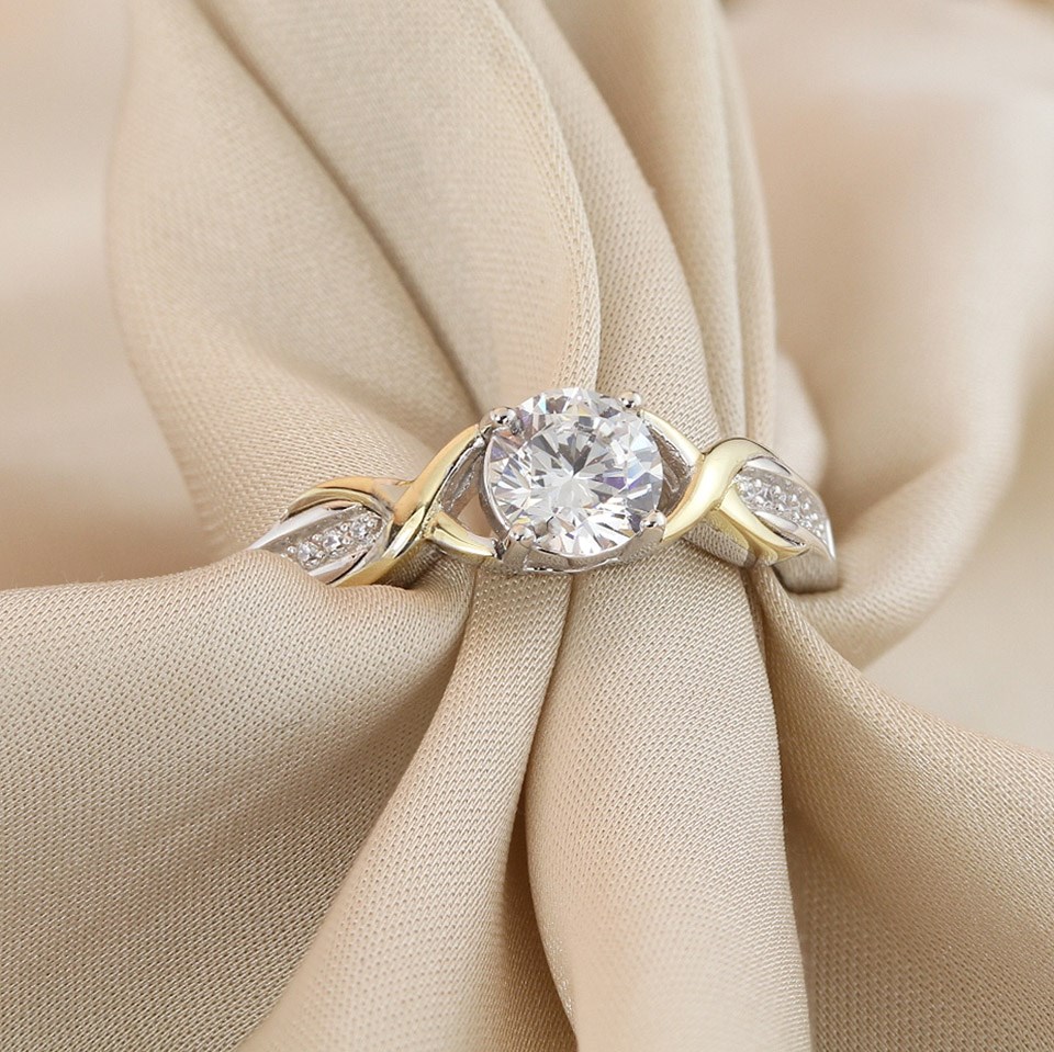 Night & Day Silver And 9ct Gold Kiss CZ Ring - R9902