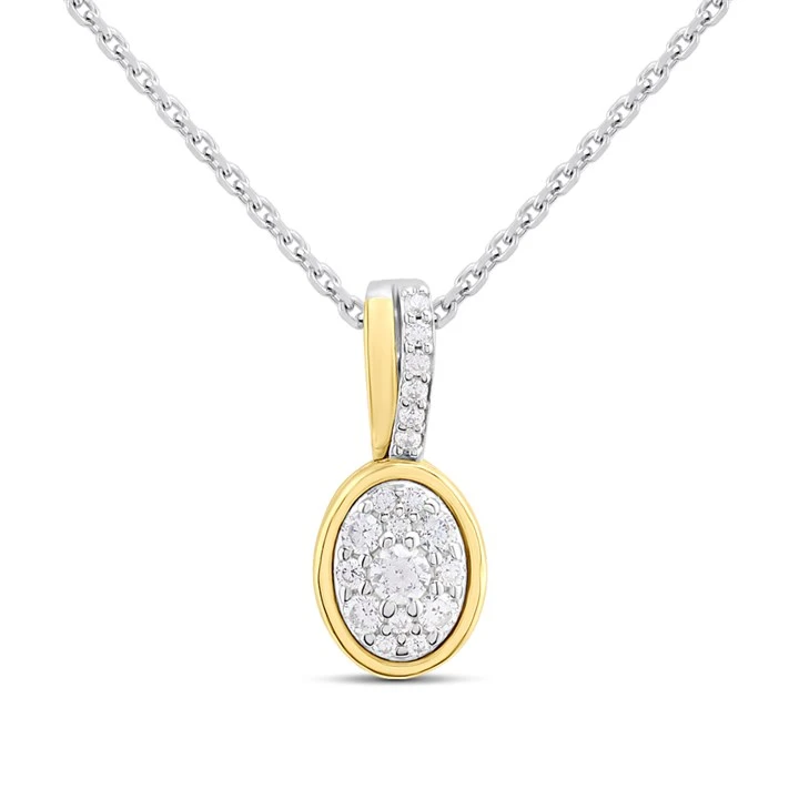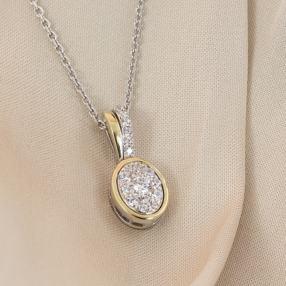 Night & Day Silver And 9ct Gold Oval CZ Necklet - M1405