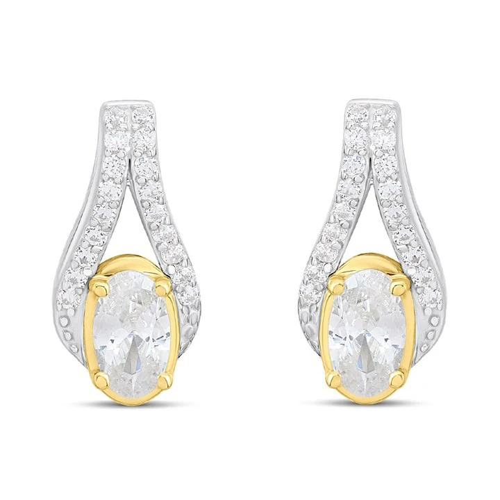 Night & Day Silver And 9ct Gold Oval Halo CZ Earrings - G9966