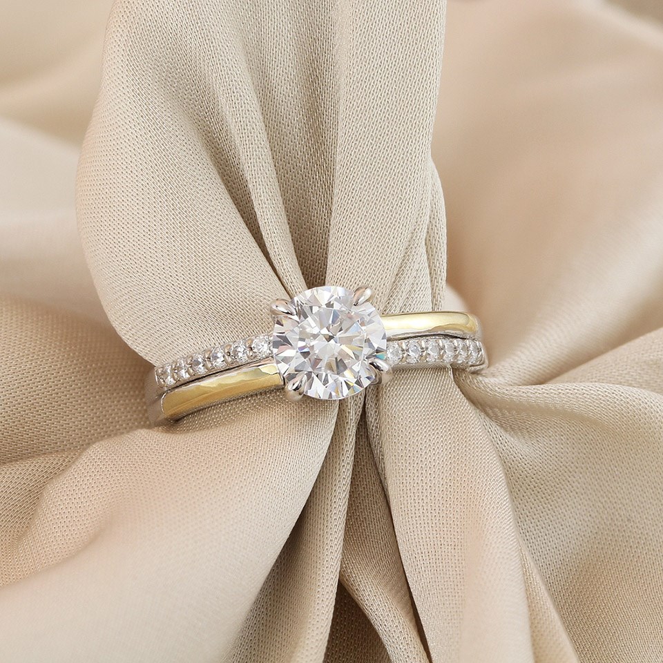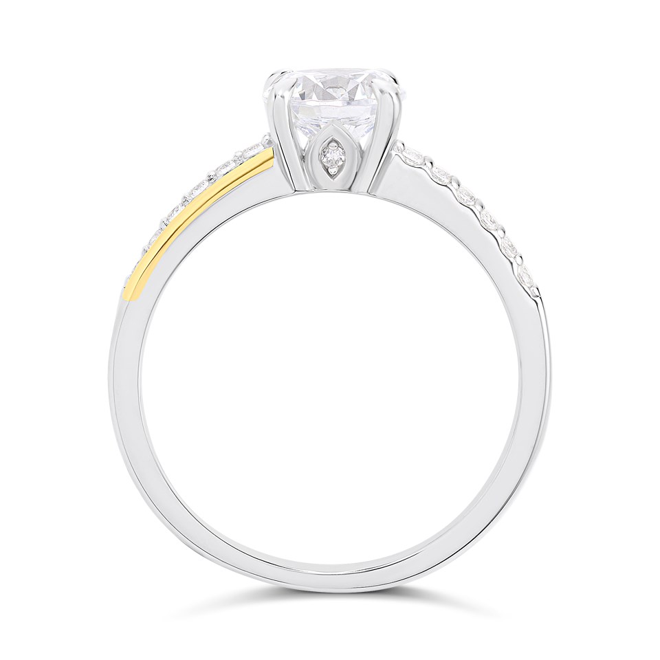 Night & Day Silver And 9ct Gold Stone Set Shoulder CZ Ring - M1705