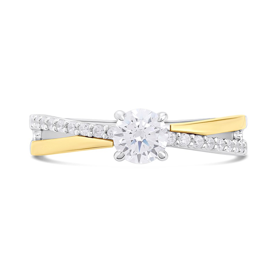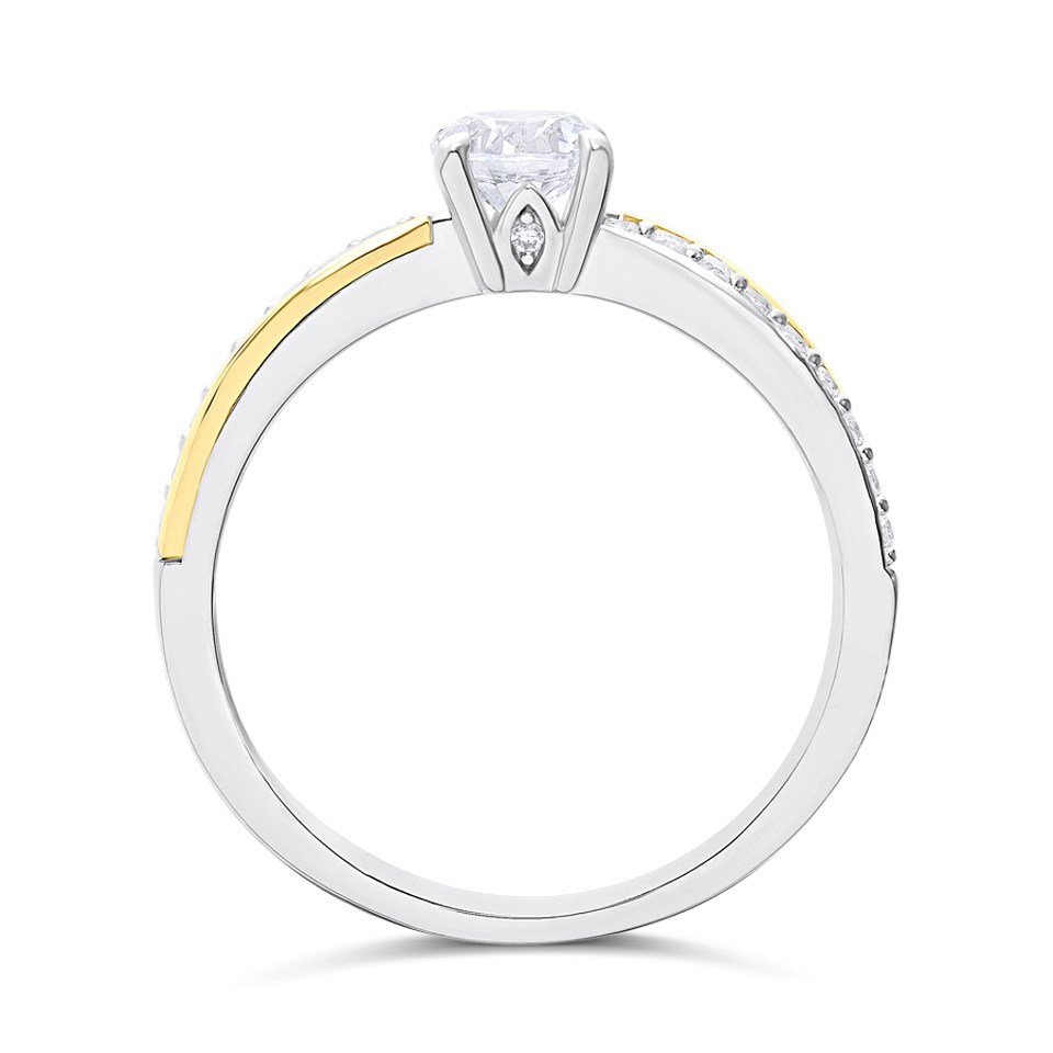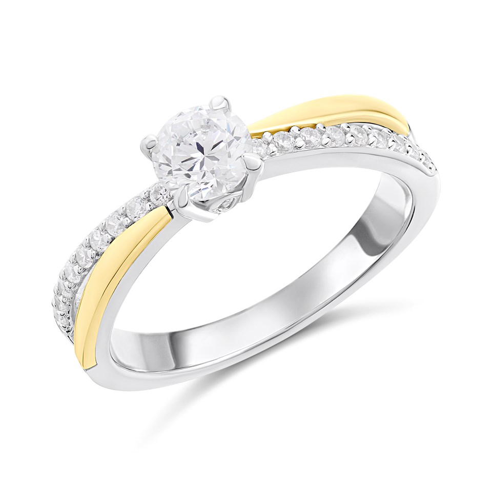 Night & Day Silver And 9ct Gold Taper Diagonal CZ Ring - M1704
