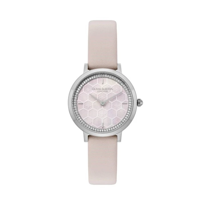 Olivia Burton 24000270 Honeycomb Ultra Slim Pink Leather Strap Watch - W28166
