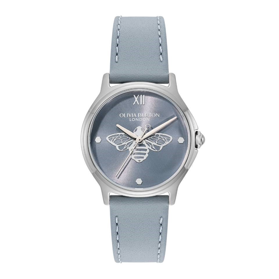 Olivia Burton 24000343 Classic Bee Chalk Blue Leather Strap Watch - W28210