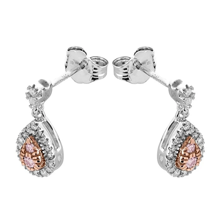 One In A Million 9ct Two Colour Gold Pink Diamond Drop Earrings - 1/4ct per pair - D7847