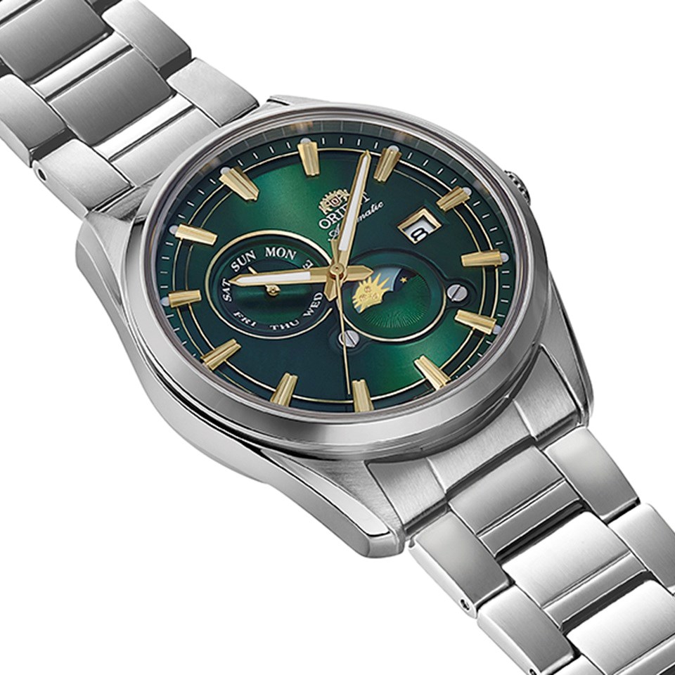 Orient RA-AK0314E30B Sun & Moon Green Dial Automatic Bracelet Watch - W29110