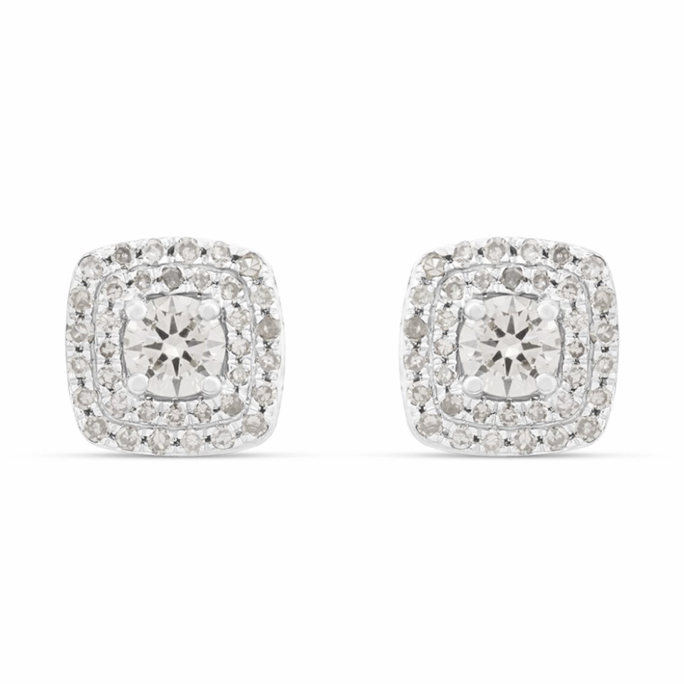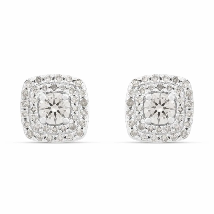 Platinum Cushion-Shaped Diamond Cluster Stud Earrings, 1/2ct/pr - D08504