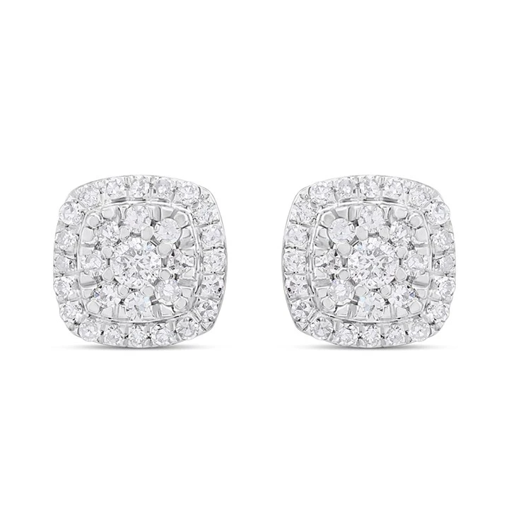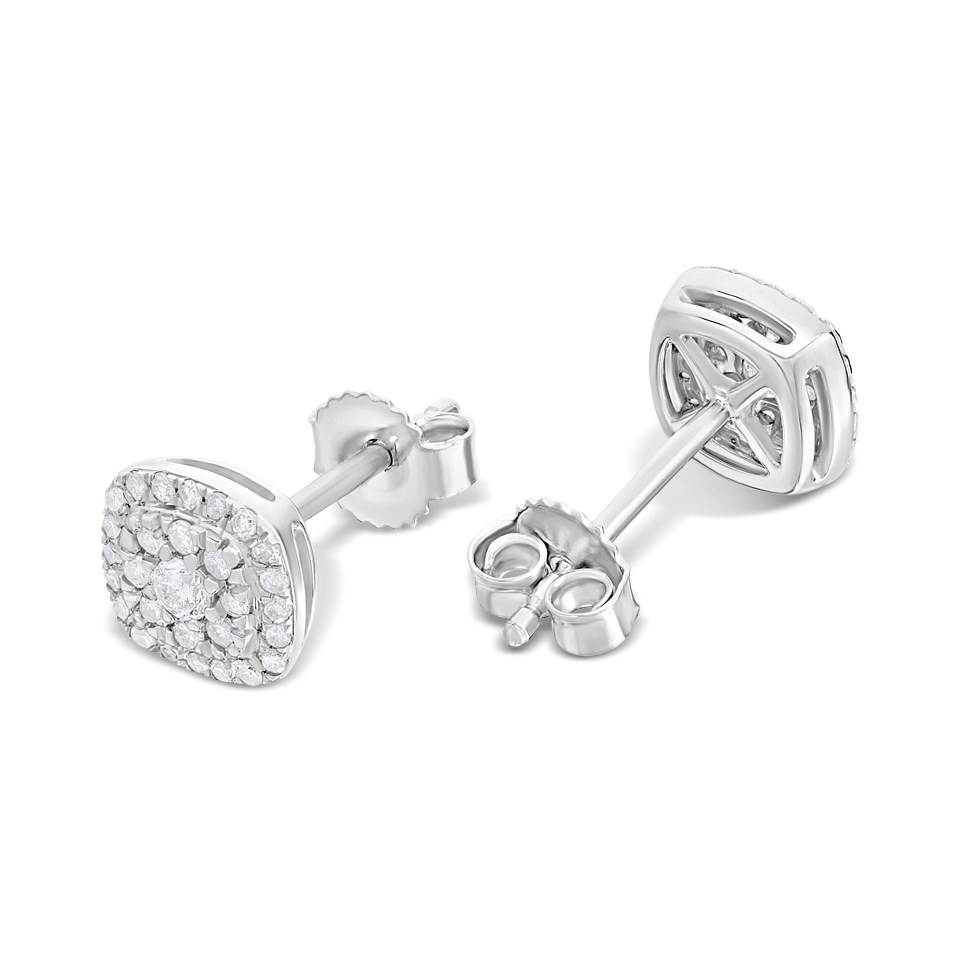 Platinum Cushion-Shaped Diamond Cluster Studs Earrings, 1/4ct/pr - D08502