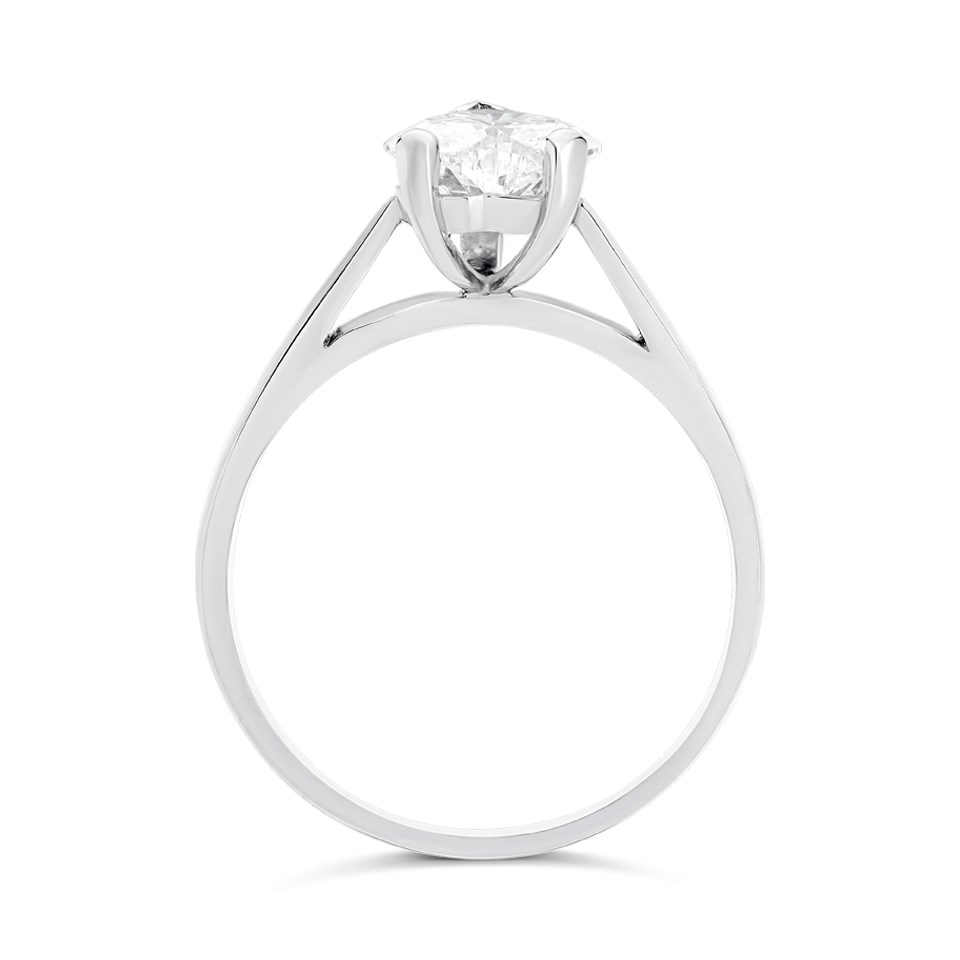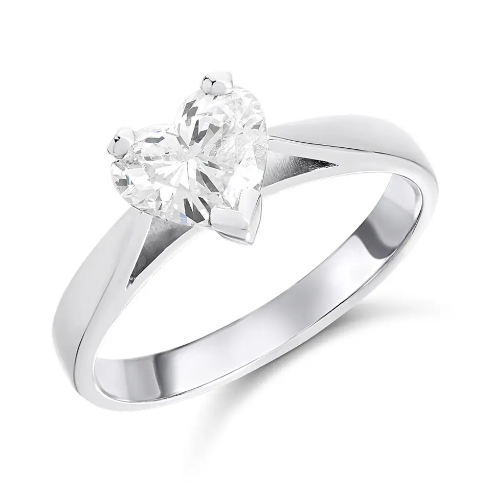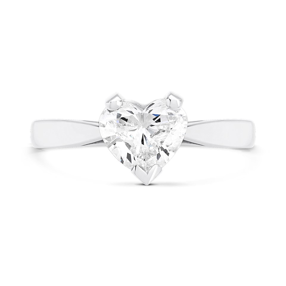 Celebrate your love with the stunning Solitaire Diamond Engagement Ring, a symbol of timeless elegance and commitment. Featuring a single, heart cut diamond, this classic design is crafted to perfection in our UK workshop. The polished platinum solitaire setting elegantly showcases the diamond, allowing its natural sparkle to shine through with every movement.