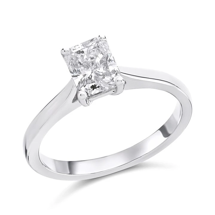 Celebrate your love with the stunning Solitaire Diamond Engagement Ring, a symbol of timeless elegance and commitment. Featuring a single, radiant cut diamond, this classic design is crafted to perfection in our UK workshop. The polished platinum solitaire setting elegantly showcases the diamond, allowing its natural sparkle to shine through with every movement.