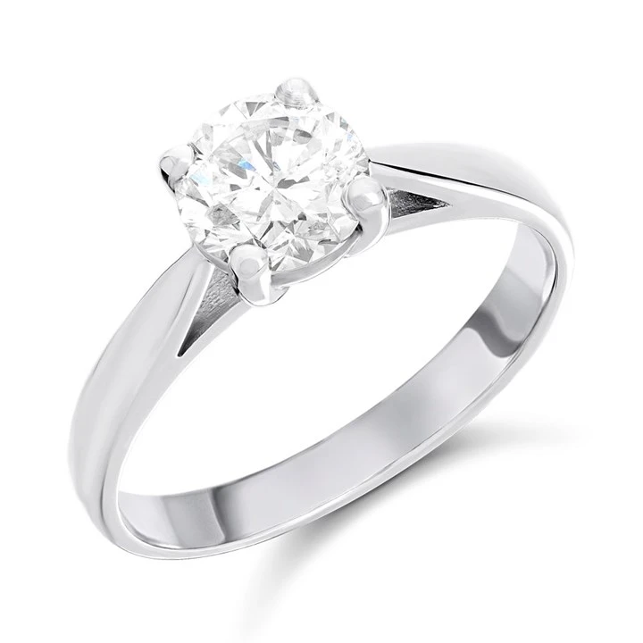 Celebrate your love with the stunning Solitaire Diamond Engagement Ring, a symbol of timeless elegance and commitment. Featuring a single, round brilliant cut diamond, this classic design is crafted to perfection in our UK workshop. The polished platinum solitaire setting elegantly showcases the diamond, allowing its natural sparkle to shine through with every movement.