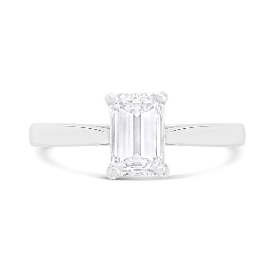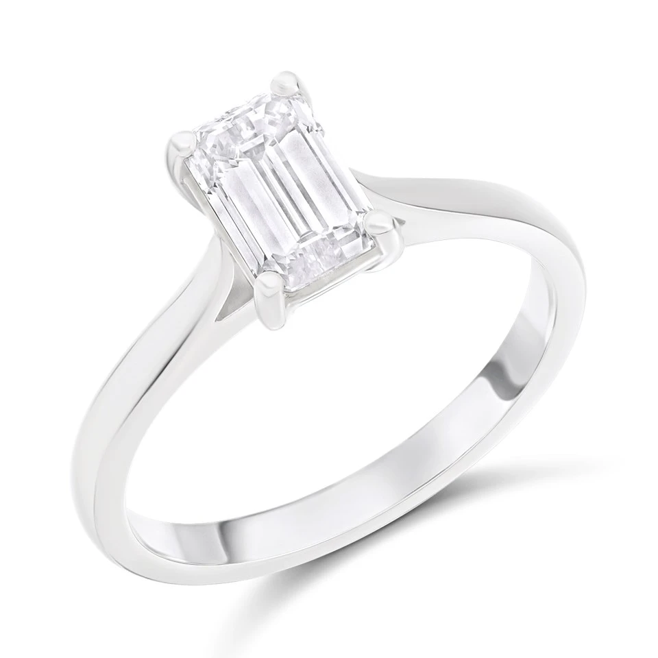 Discover the timeless beauty of our Solitaire Diamond Engagement Rings, a symbol of eternal love and commitment. Expertly crafted with precision in our UK workshop, this classic design features an emerald cut ethically sourced diamond set in a sleek platinum, polished band. The solitaire setting highlights the diamond's dazzling brilliance and fire, making it the perfect choice for those seeking sophistication and simplicity.