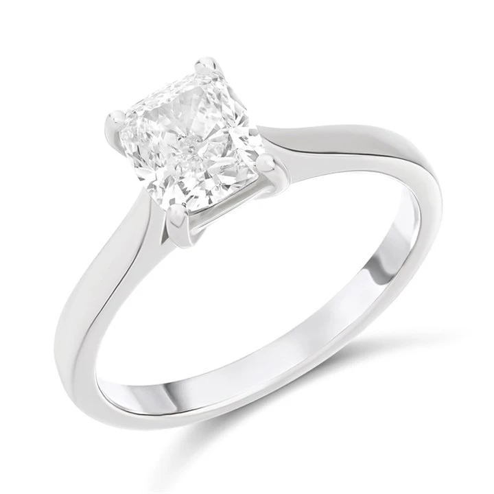 Celebrate your love with the stunning Solitaire Diamond Engagement Ring, a symbol of timeless elegance and commitment. Featuring a single, cushion cut diamond, this classic design is crafted to perfection in our UK workshop. The polished platinum setting elegantly showcases the diamond, allowing its natural sparkle to shine through with every movement.