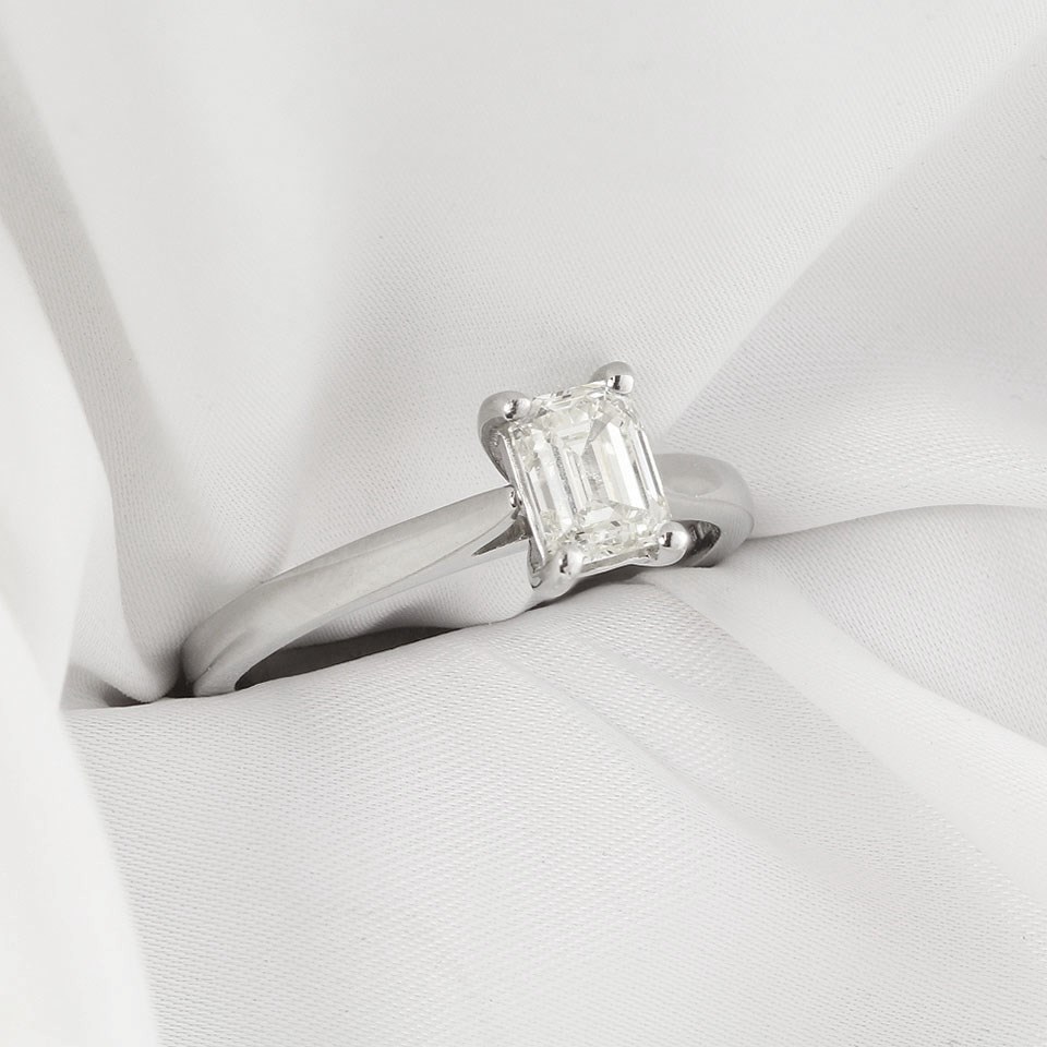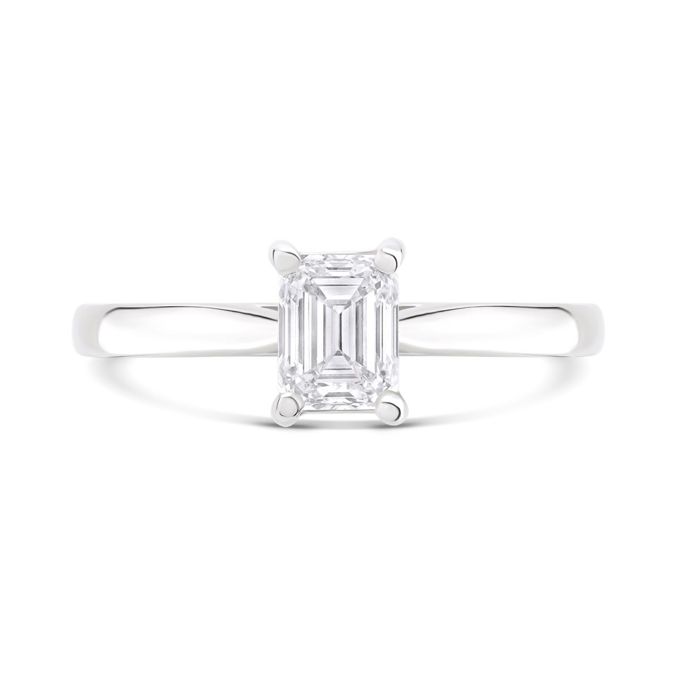 The emerald cut diamond is carefully selected for its exceptional brilliance, delivering unmatched sparkle and radiance. Set in a sleek, high-quality platinum band, this solitaire ring emphasises the diamond's natural beauty, creating a classic look.