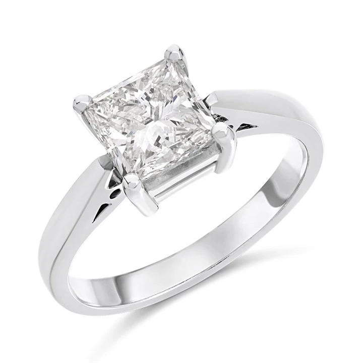 Discover the ultimate symbol of love with our stunning solitaire diamond engagement ring. Crafted from platinum in our UK workshop, this classic ring features a dazzling princess cut diamond that radiates unparalleled brilliance and fire. With its simple yet elegant design, the solitaire setting showcases the diamond’s beauty, making it a perfect choice for those seeking a timeless engagement ring.