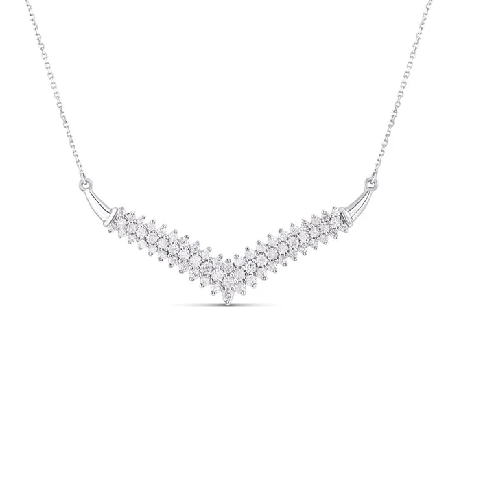 Platinum Fixed Diamond-Set "V" Necklet, 1/2ct - D08505