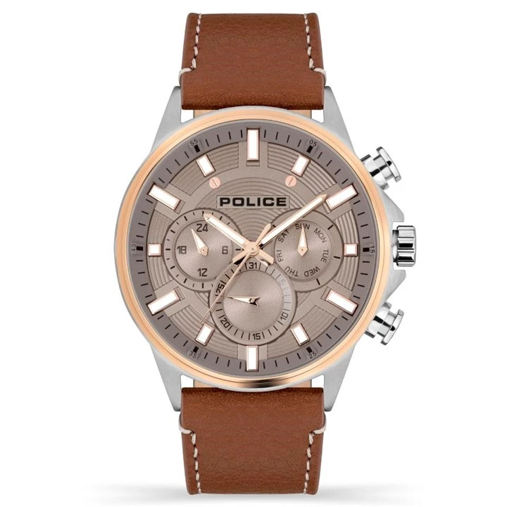 Police Kismet Multi Dial Brown Leather Strap Watch - W44111