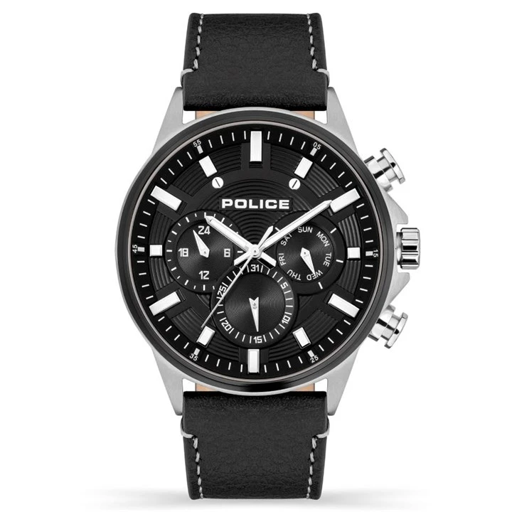 Police Kismet Multi Function Black Leather Strap Watch - W44110
