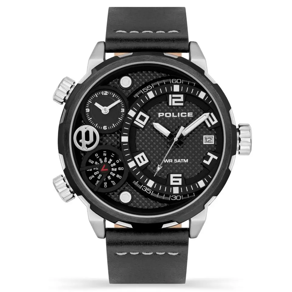 Police Ray Black Leather Strap Watch - W44129