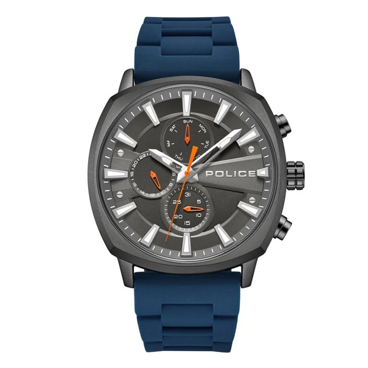 Police Urban Rebel Grey IP Blue Silicone Strap Watch - W44133
