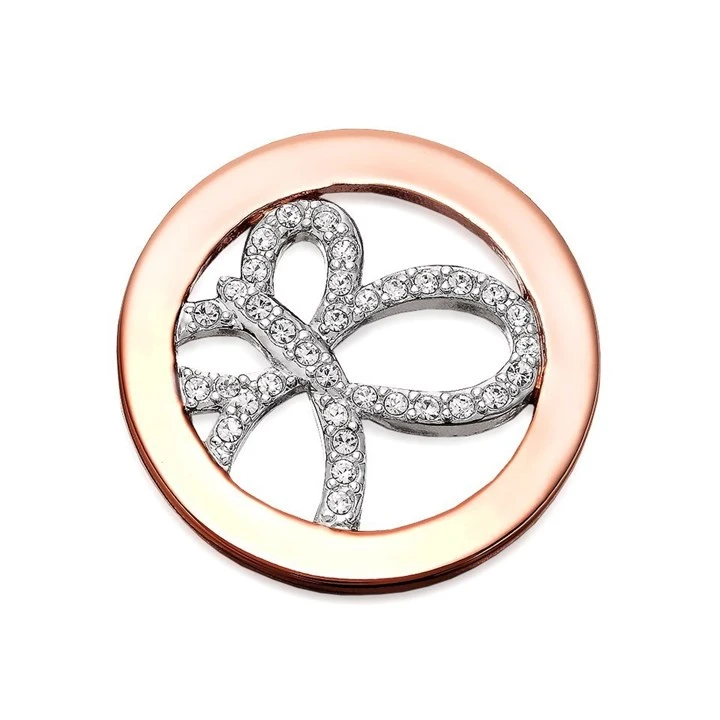Quions QMOA-10M-R Butterfly To Catch Rose Gold Plated Crystal Coin - Medium - J75121