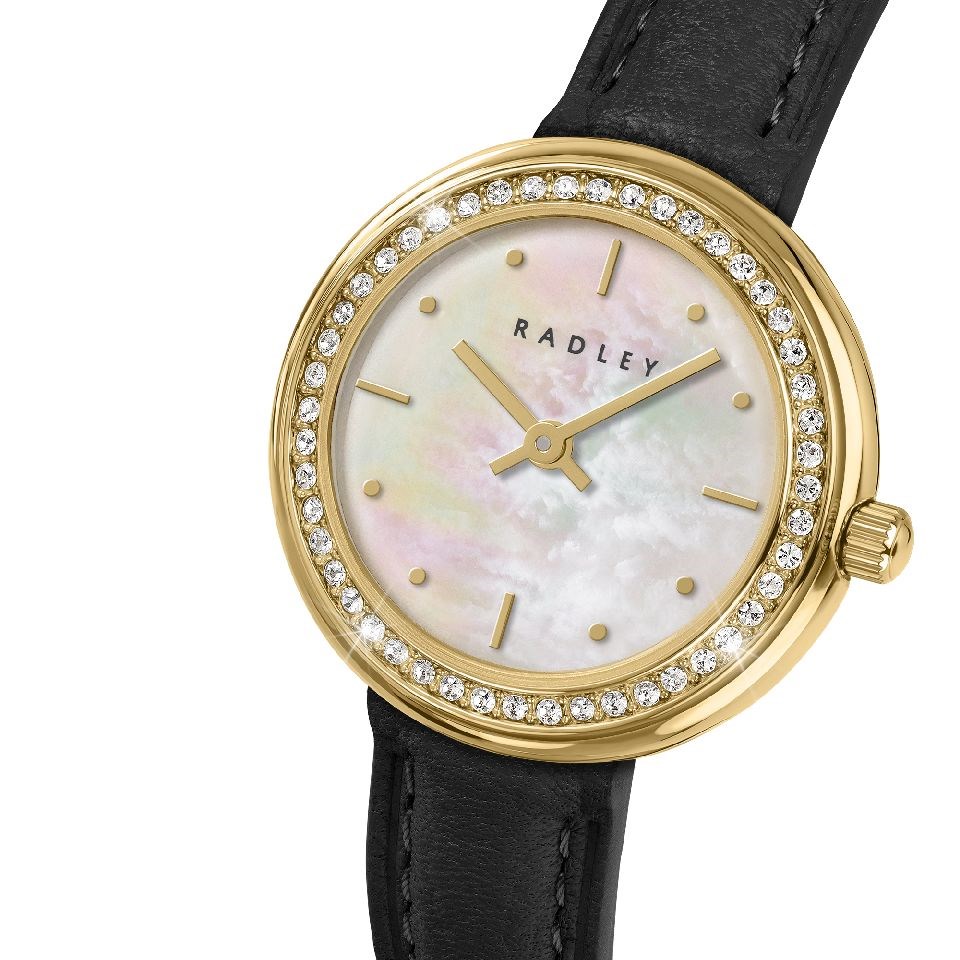 Radley RY21972 Mother Of Pearl Dial Stone Set Case Black Strap Watch - W51572