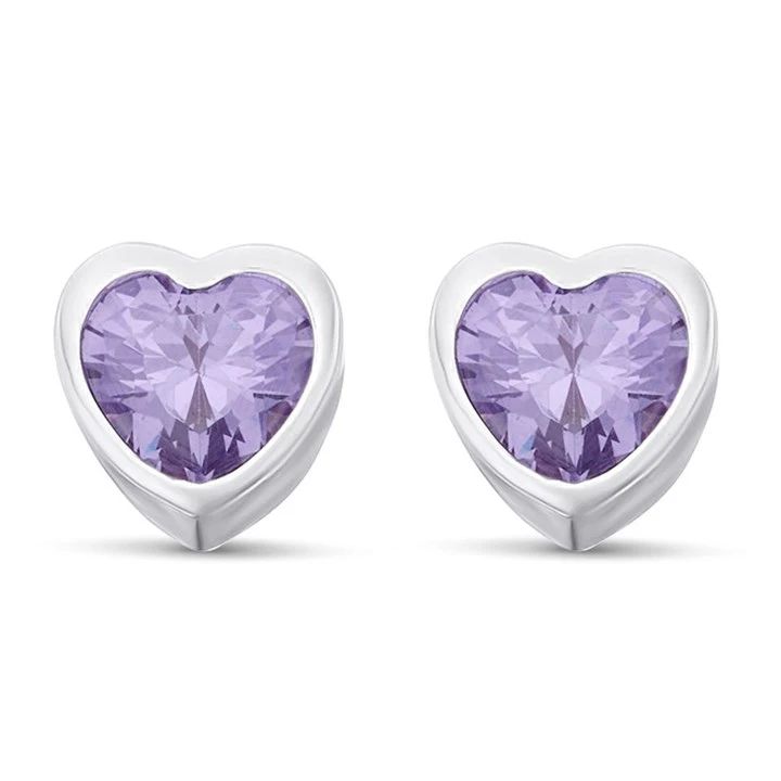 Radley RYJ1215 Silver Purple Cubic Zirconia Heart Stud Earrings - J8199