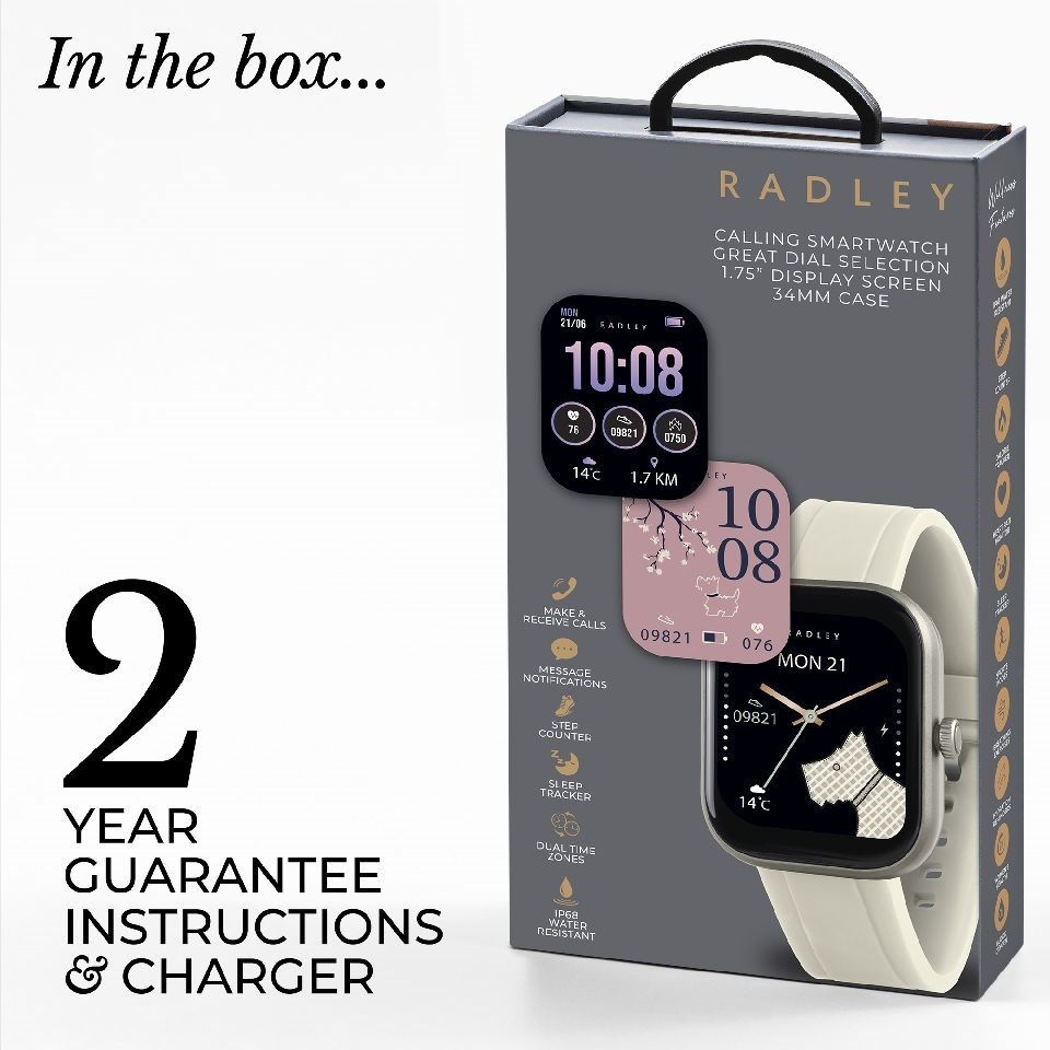 With a white aluminum bezel, it gives a playful pop of colour and is finished with a soft silicone strap. To explore the full range of Radley Series 55 features download the Radley app, compatible with Android 9.0+ and iOS 12.