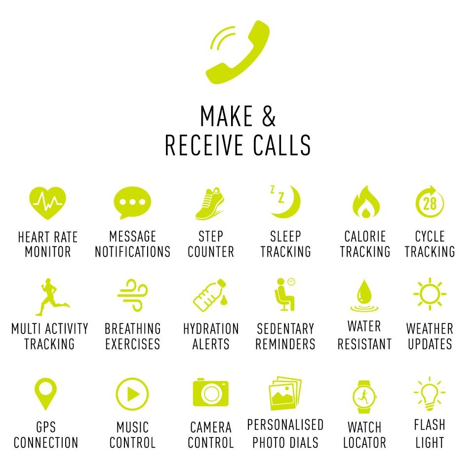 - Make and receive calls directly from your wrist, providing convenient hands-free communication wherever you go. Stay connected and never miss an important call again, all without reaching for your smartphone
