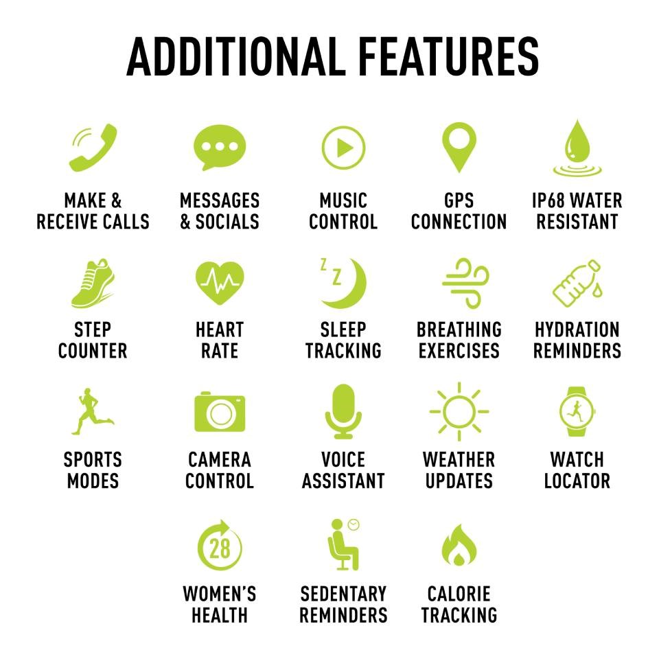 The IP68 water resistance rating makes this smart watch the perfect for surface swimming, or any other of the multiple activities this smart watch will help you track! And all this with exceptional battery life, empowering you to stay connected for longer between charges.