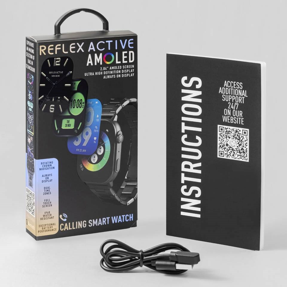 Refelx Active watches are presented in a gift box complete with instruction manual, USB and a 2-year guarantee. Download the free Reflex Active App to enjoy additional functionality. IOS 9.0+ and Android 8.0+ Compatible.