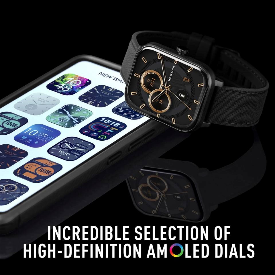 With a 37mm black case and black textured silicone strap, the watch dials are interchangeable with a variety of options to choose from. You can also upload dials from the extensive Reflex Active dial library via the App or even create your own using personal photos from your phone.