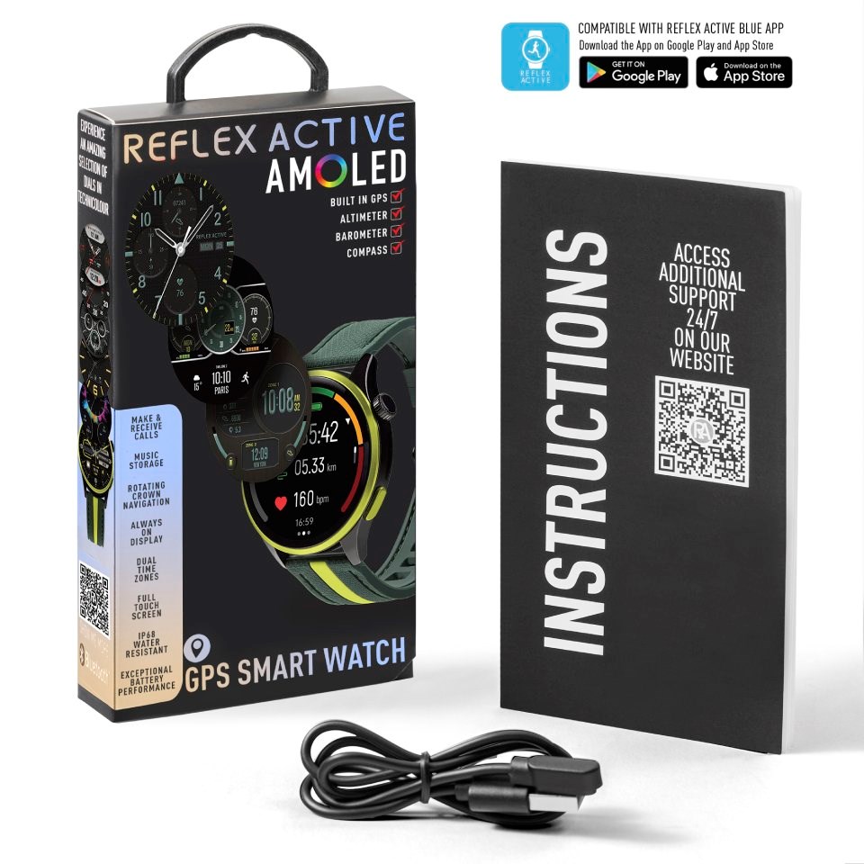 Featuring a 46mm black and lime IP case, it is finished with a double injection silicone strap. Download the free Reflex Active Red App to enjoy additional functionality. iOS 12+ & Android 9.0+ compatible.
