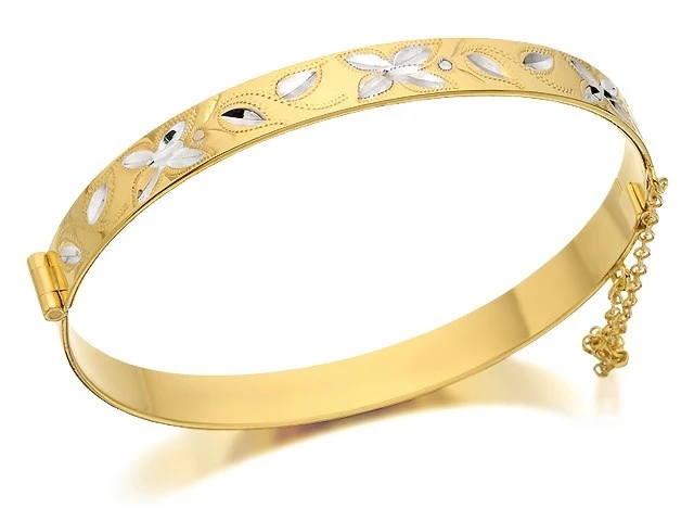 Rolled Gold Two Tone Butterfly And Flowers Hinged Bangle - M9350