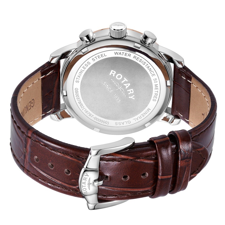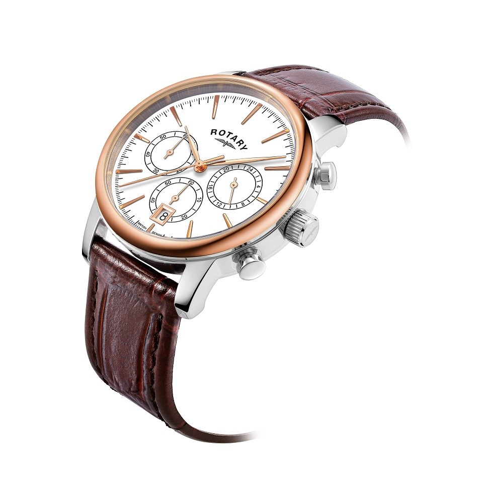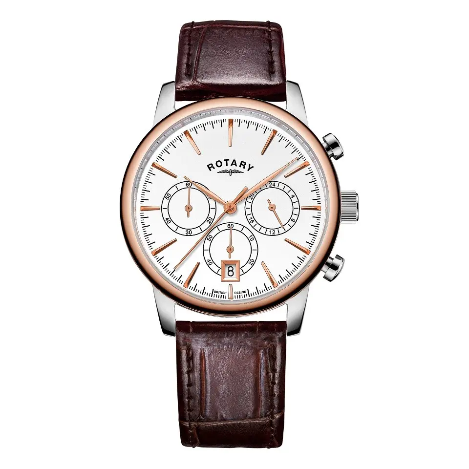 Rotary GS00378/02 Two Tone Chronograph Brown Leather Strap Watch - W13181