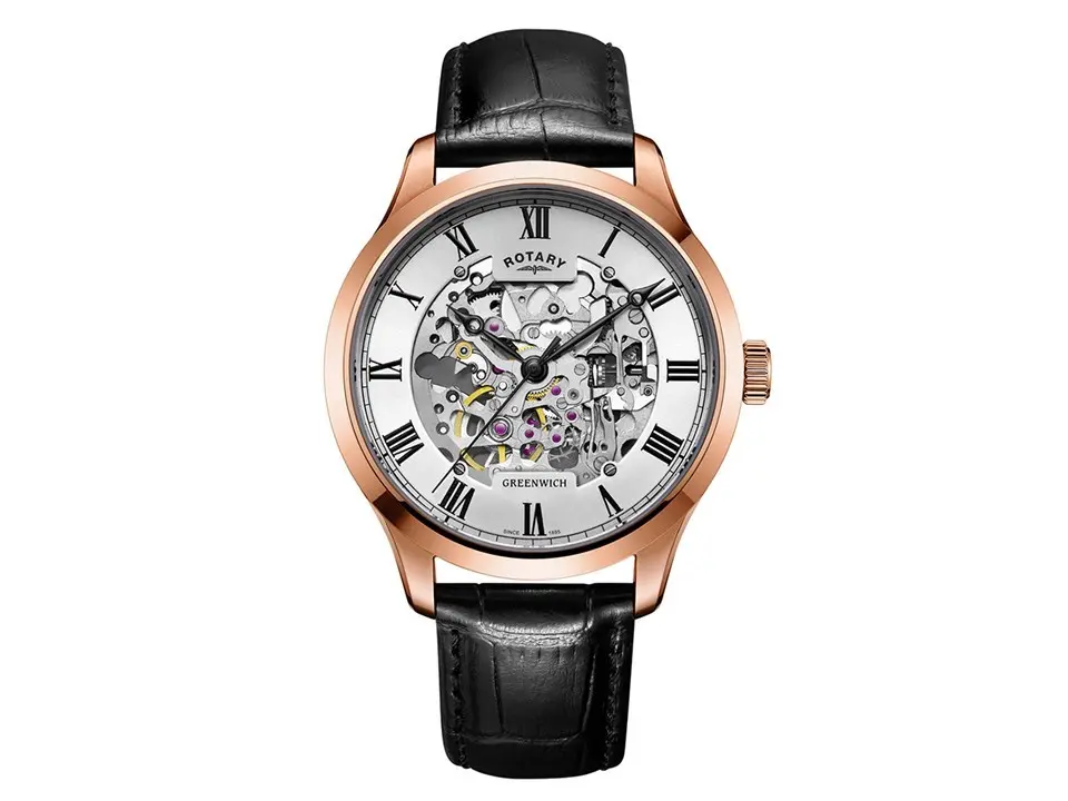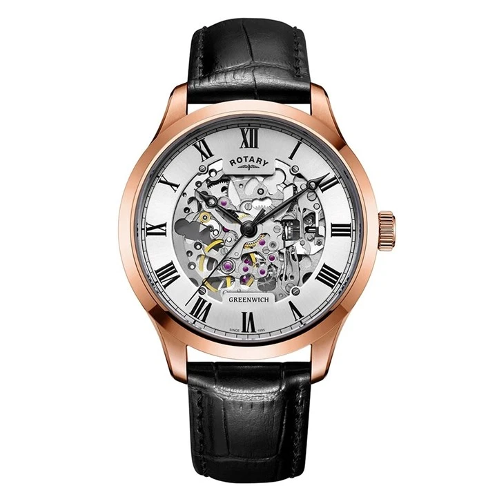 Rotary GS02942/01 Greenwich Skeleton Automatic Black Strap Watch - W1215