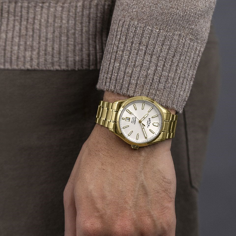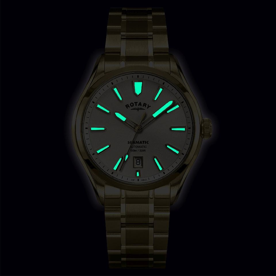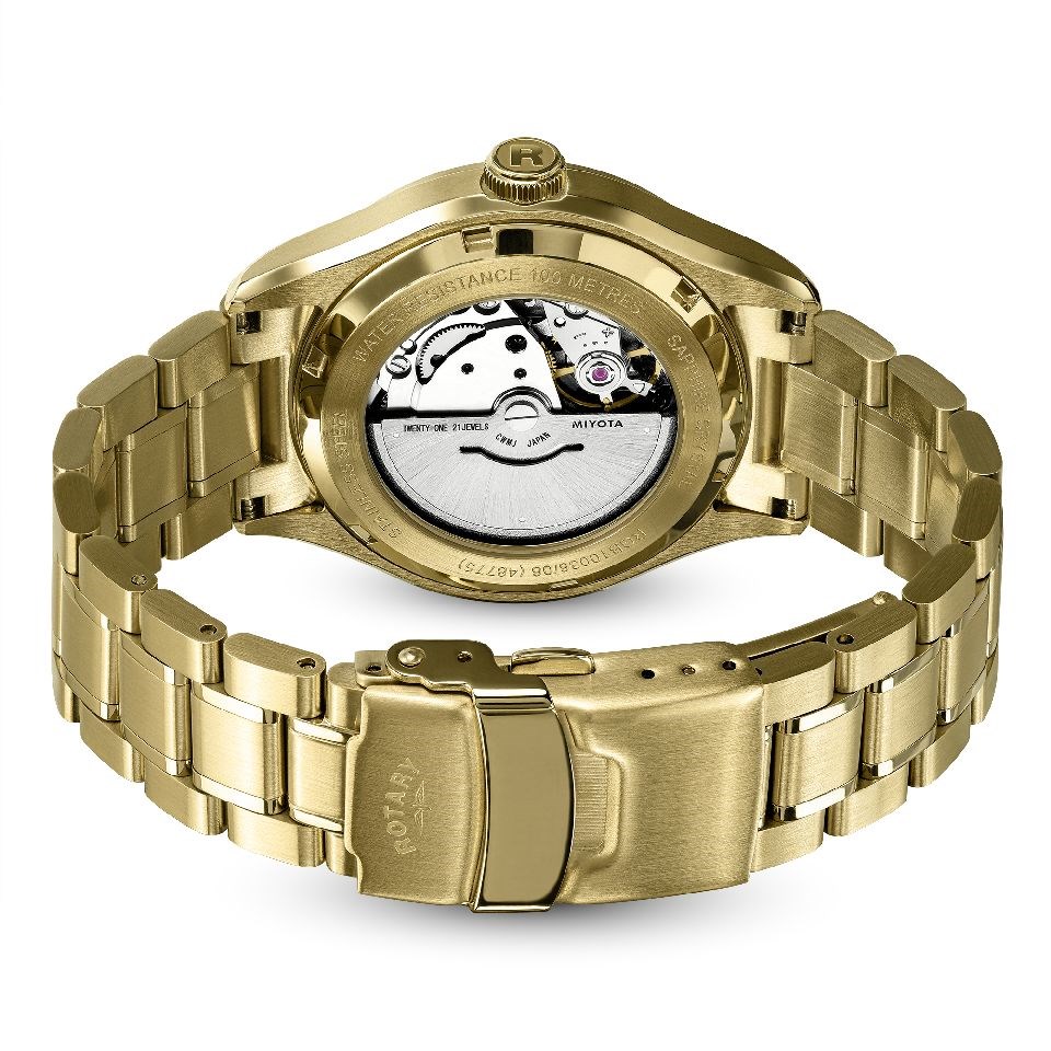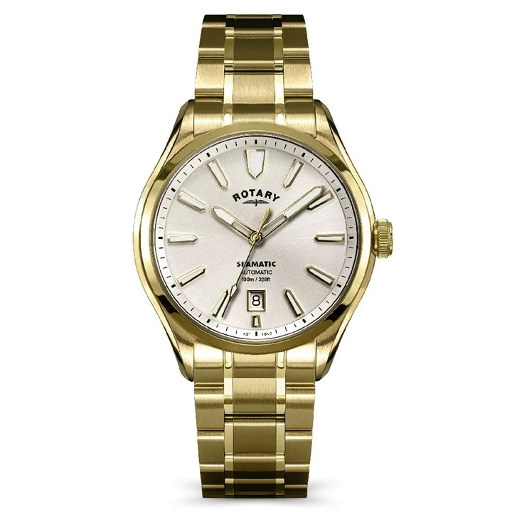 Rotary RGB10036/06 Seamatic 100 Auto Gold Tone White Dial Bracelet Watch - W13314