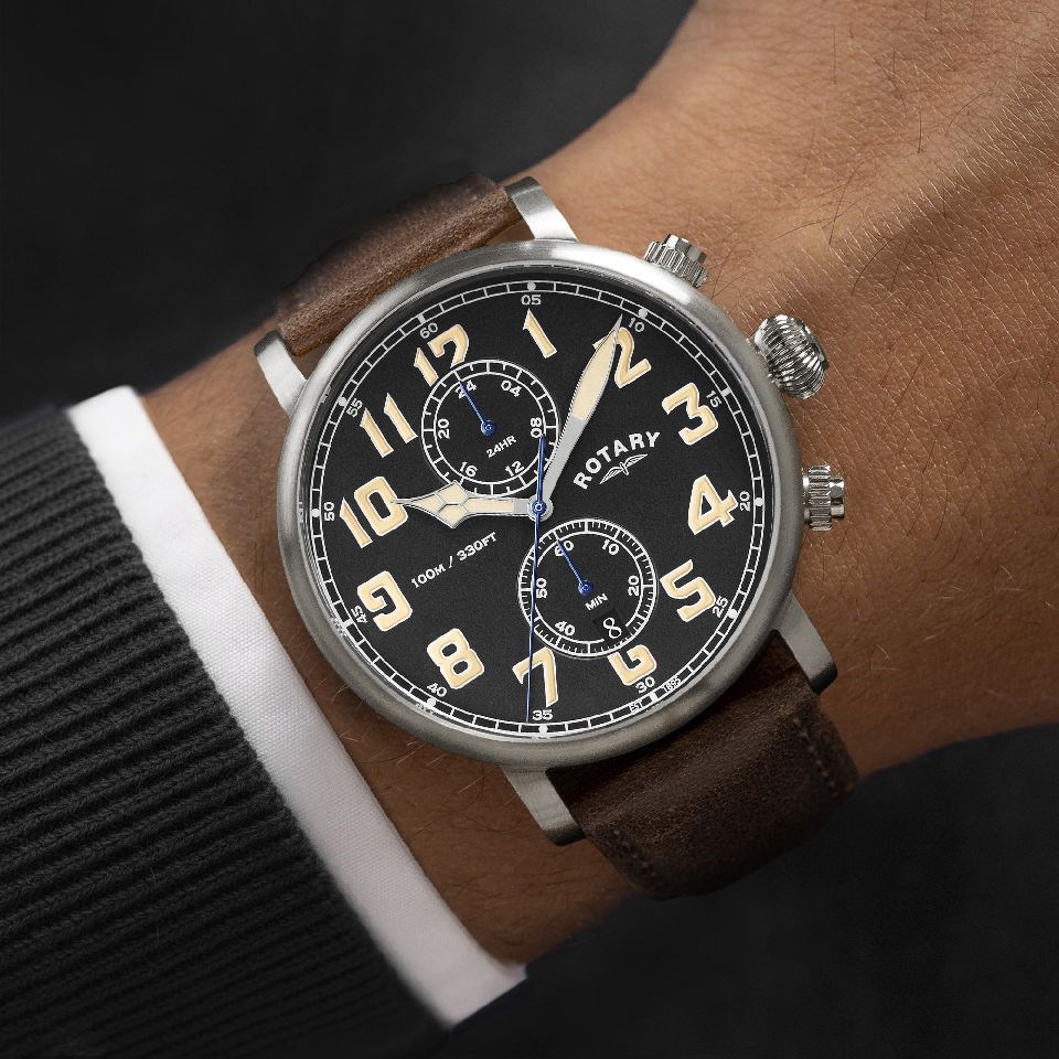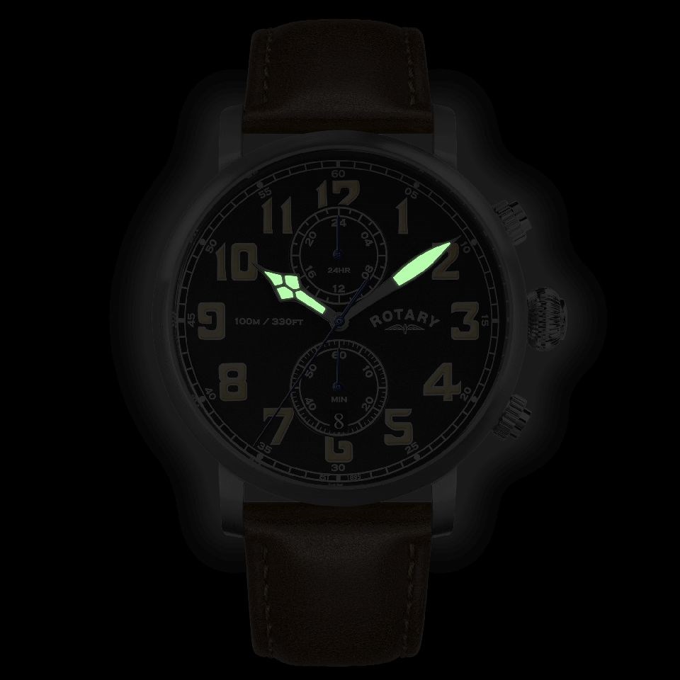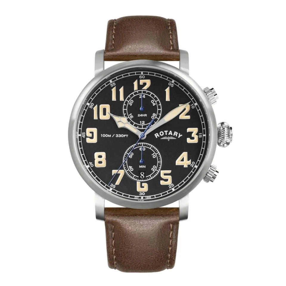 Rotary RGS10000/04 Apex100 Pilot Chronograph Brown Leather Strap Watch - W13308