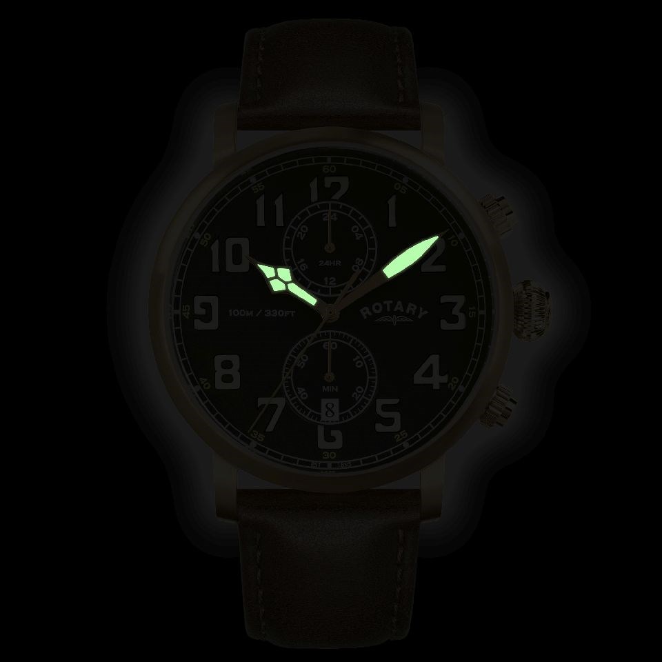 Rotary RGS10002/24 Apex100 Pilot Chronograph Brown Leather Strap Watch - W13287