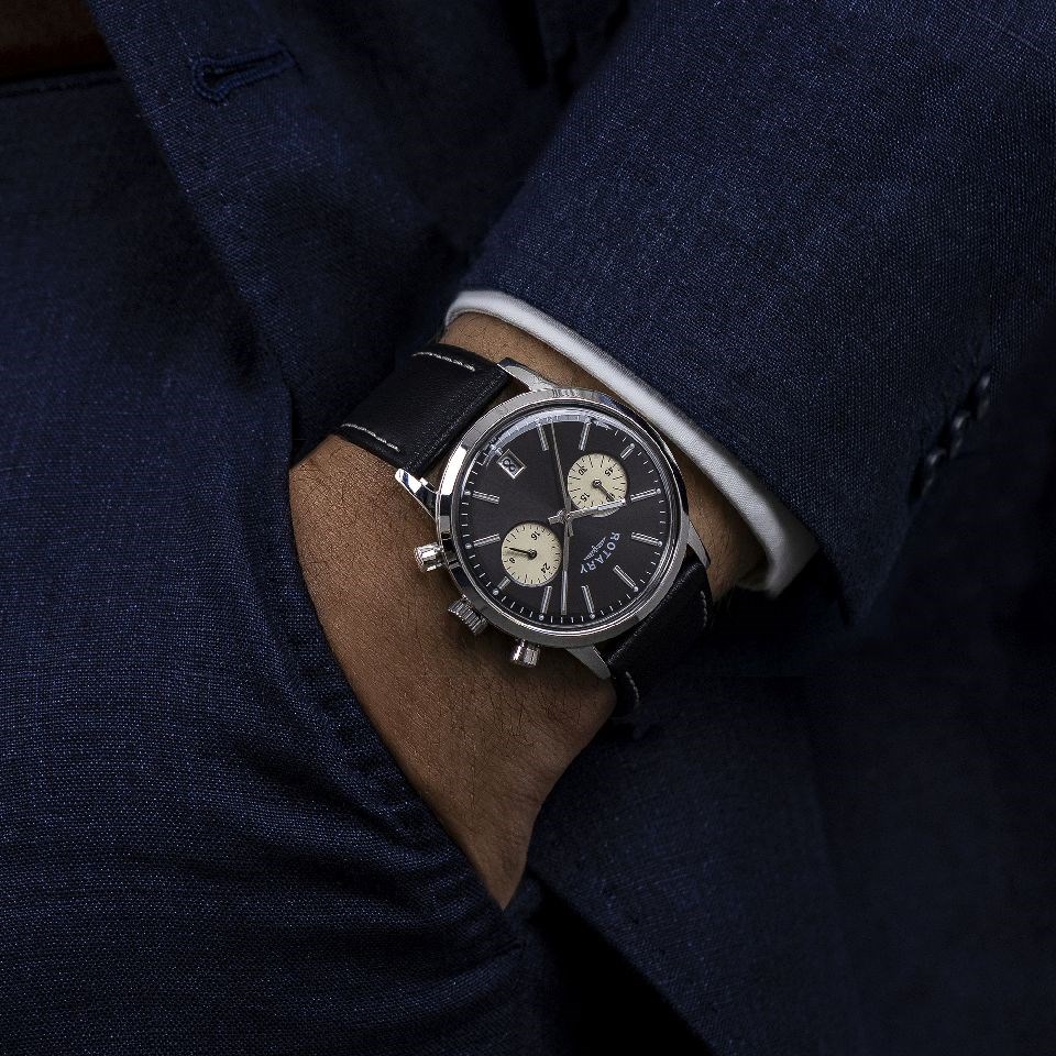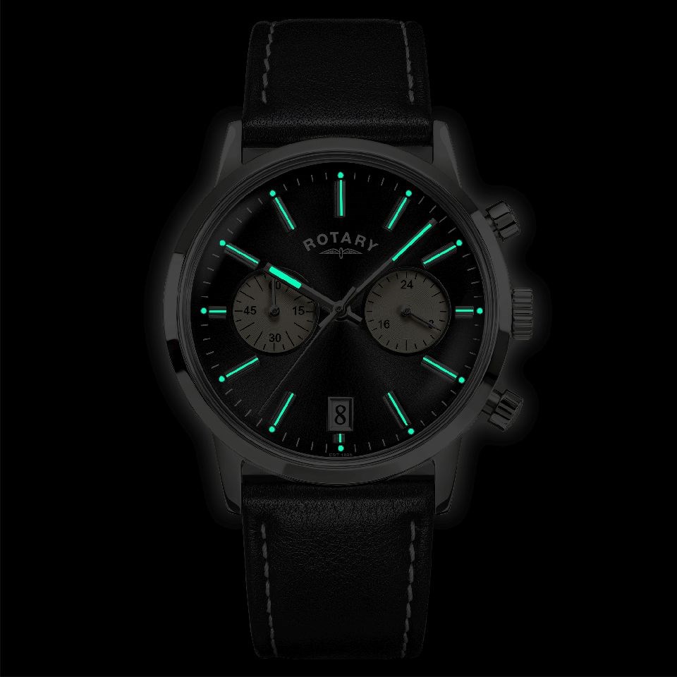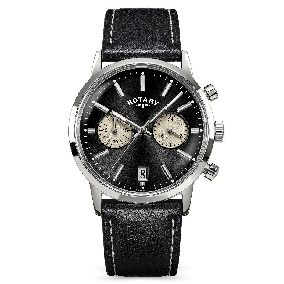Rotary RGS10067/04 1895 Chronograph Stainless Steel Black Dial And Leather Strap Watch - W13321