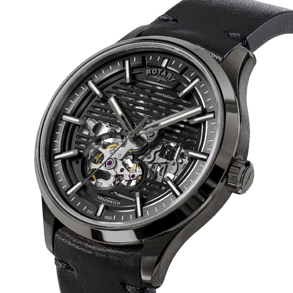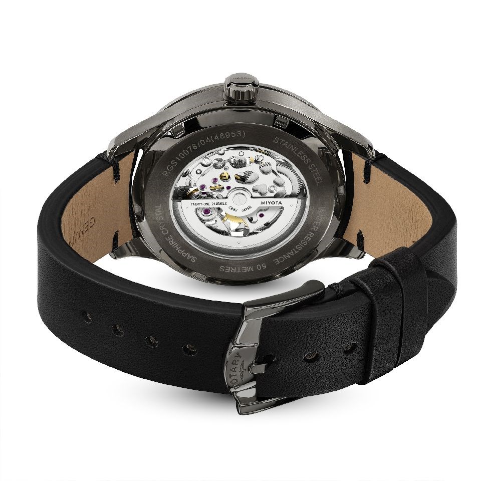 Rotary RGS10078/04 Greenwich GT1 Automatic Gun IP Black Strap Watch - W13316
