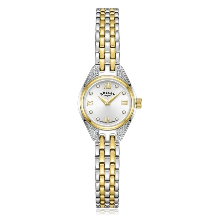 Adding a touch of glamour, the two-tone case is adorned with a crystal setting. The two-tone PVD 5-link bracelet exudes luxury and is seamlessly secured with a hidden butterfly clasp, providing both comfort and style. Functionality meets finesse as this watch boasts water resistance up to 30m, making it a versatile accessory for various occasions. Imbued with a perfect blend of style and substance, this Rotary Traditional stands as a captivating masterpiece, capturing sophistication in every detail.