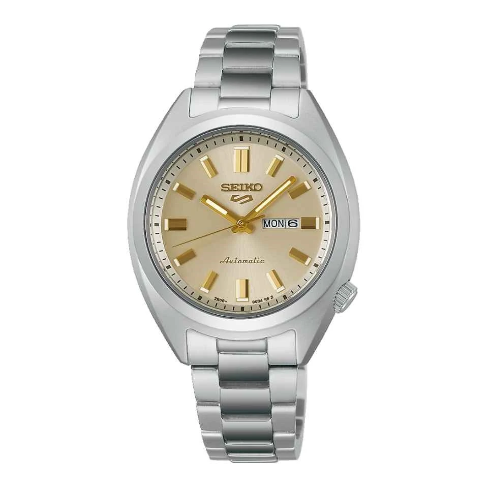 The dial is finished in a rich cream, doubled by the cream-toned lumibrite indices, elevated by fine surface details that create depth and luxury. A newly designed bracelet with a smaller pitch ensures a comfortable fit while echoing the timeless character of the SNXS line. Powered by automatic movement, the watch combines reliable timekeeping with day-date functionality. With 10 bar water resistance and a secure three-fold clasp with push-button release, it is crafted for everyday durability and ease of wear.