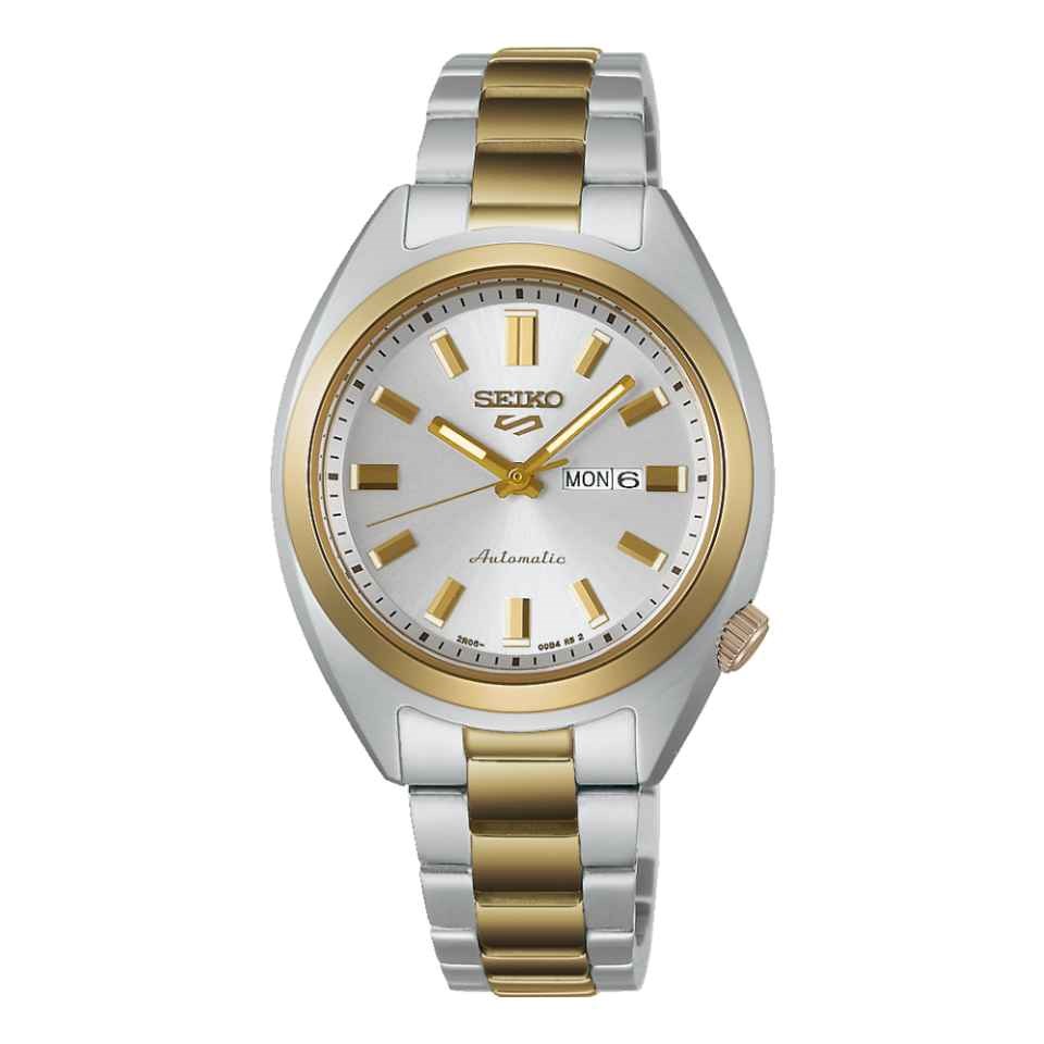 The dial is finished in a clean silver tone, enhanced by the gold-coloured indices and hands, elevated by fine surface details that create depth and richness. A newly designed two-tone bracelet with a smaller pitch ensures a comfortable fit while echoing the timeless character of the SNXS line. Powered by an automatic movement, the watch combines reliable timekeeping with day-date functionality. With 10 bar water resistance and a secure three-fold clasp with push-button release, it is crafted for everyday durability and ease of wear.