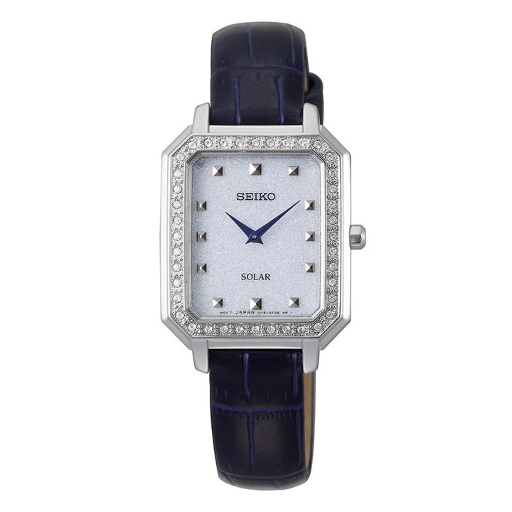 Seiko SUP429P1 Solar Stone Set Blue Leather Strap Watch - W78126