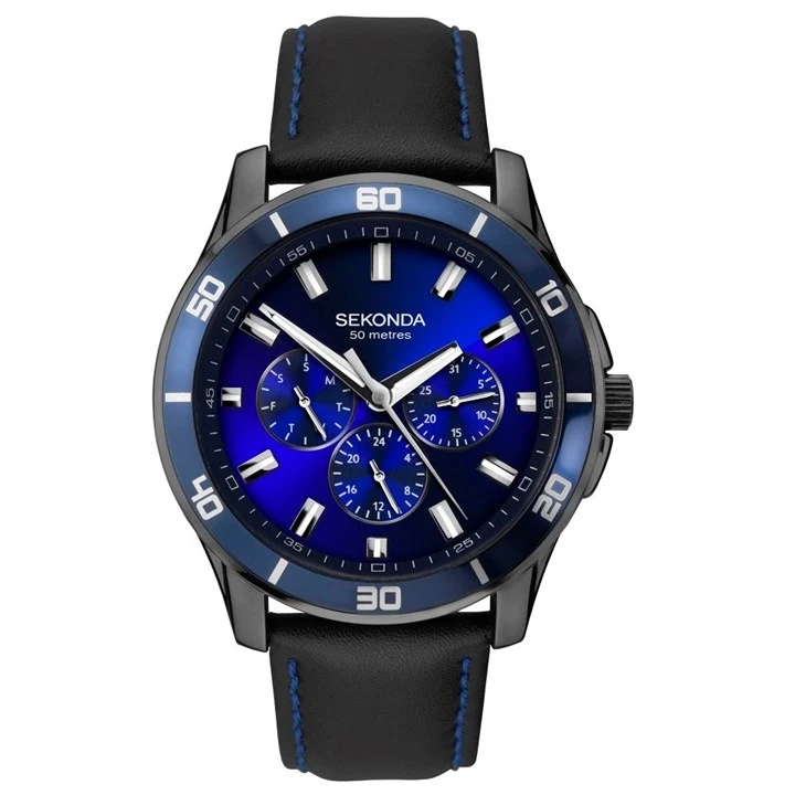 Sekonda 1634 Midnight Blue Multi Function Black Leather Strap Watch - W31165