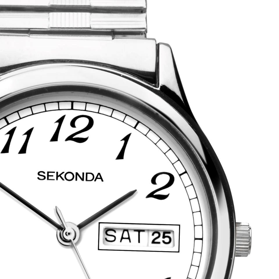 Sekonda 1693 - with a clear white dial, black number hour markers and a day/date display window, this men's watch from Sekonda offers great value for money. Featuring a stainless steel case with matching expanding bracelet.