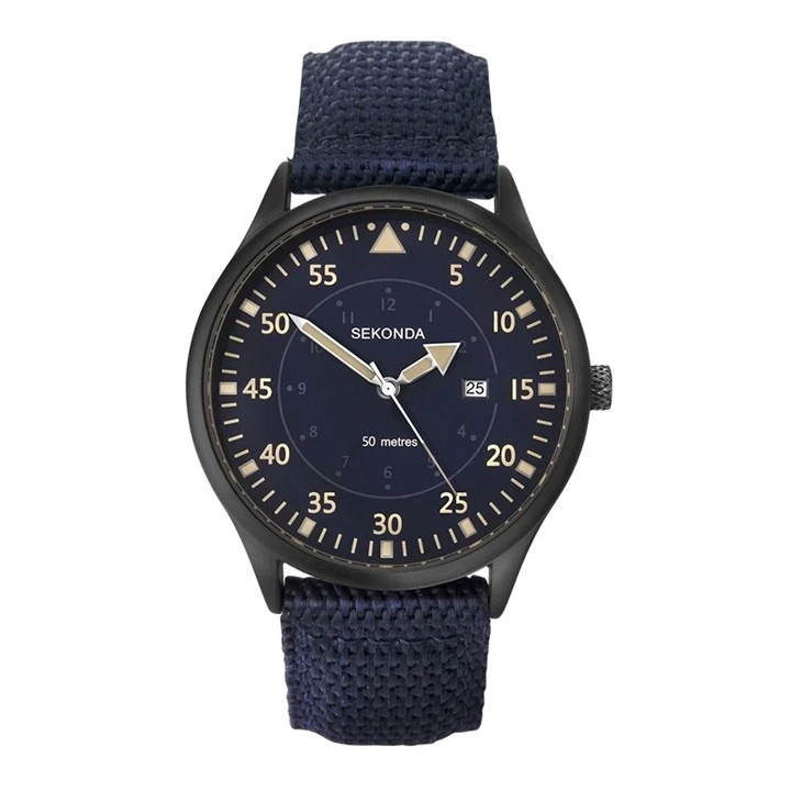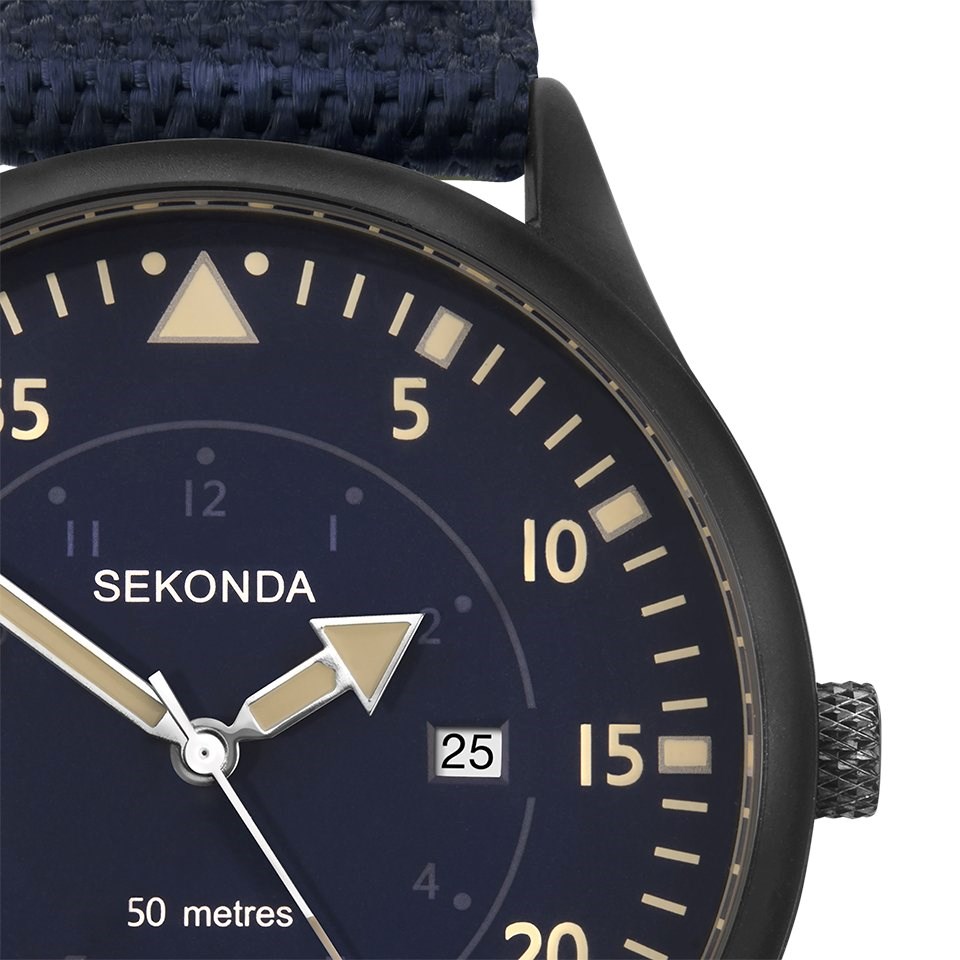 Sekonda 1795 Black IP Blue Fabric Strap Watch - W31423